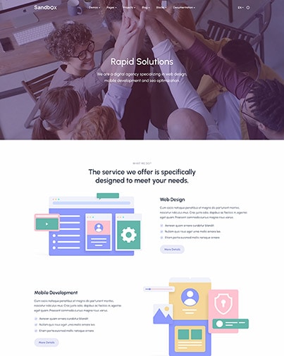Build your website using the powerful features of Sandbox