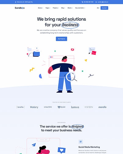 You can create your website in minutes with the help of countless amazing features of Sandbox.